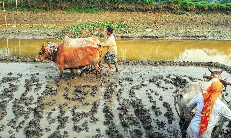 তবুও কখনো কখনো দেখা মেলে হারিয়ে যাওয়া সময়ের চিহ্নের। সম্প্রতি লালমনিরহাট সদর উপজেলার মহেন্দ্রনগর এলাকায় দেখা যায় গরু দিয়ে হালচাষের এক ব্যতিক্রমী দৃশ্য।